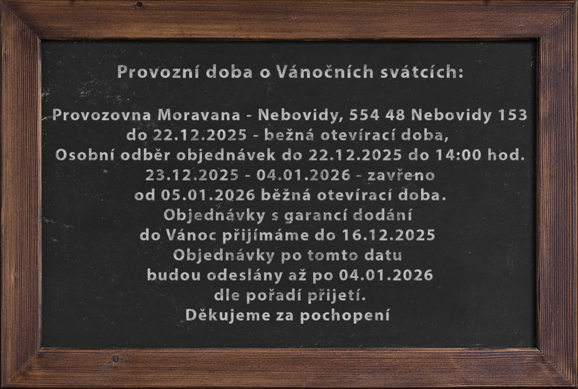 Provozní doba a garance dodání do Vánoc 2025